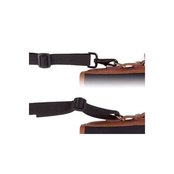 Les mousquetons en métal pivotants fixent la sangle à la plupart des sacs et peuvent être rapidement enlevés.