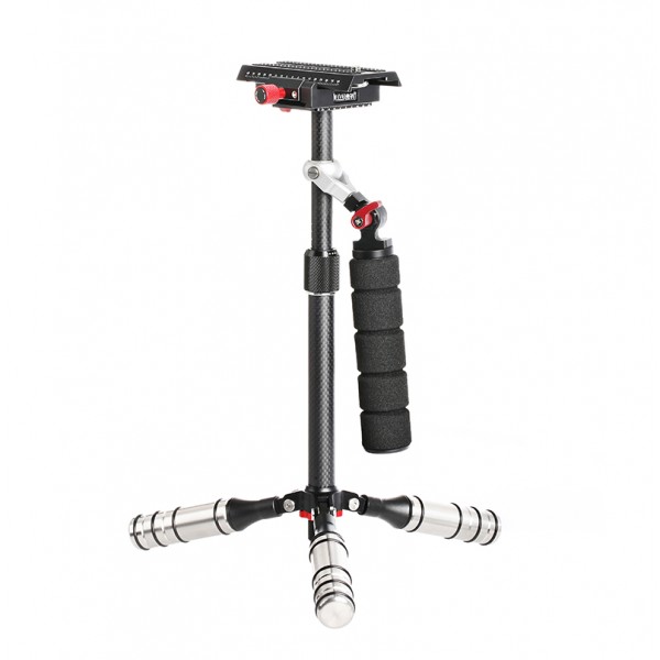 Le SK-SW Pro 1 est un stabilisateur compact et pliable conçu pour une utilisation avec les reflex numériques ou les petits caméscopes pesant jusqu'à 2,5 kg. Il est composé de matériau de fibre de carbone et d’aluminium et d’une plaque de dégagement rapide.