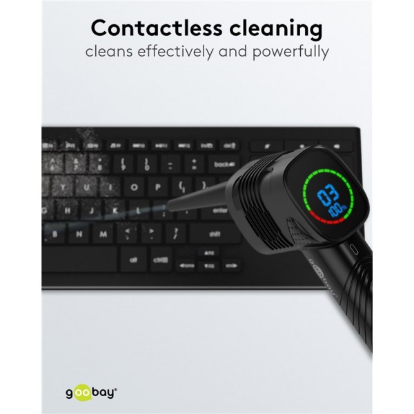 Le souffleur d'air offre une alternative écologique, non toxique et à long terme moins chère aux canettes d'air comprimé. Il est équipé de batteries Li-ion 18650 de haute qualité pour une durée de vie extra longue (câble de charge USB-A vers USB-C™ inclus).