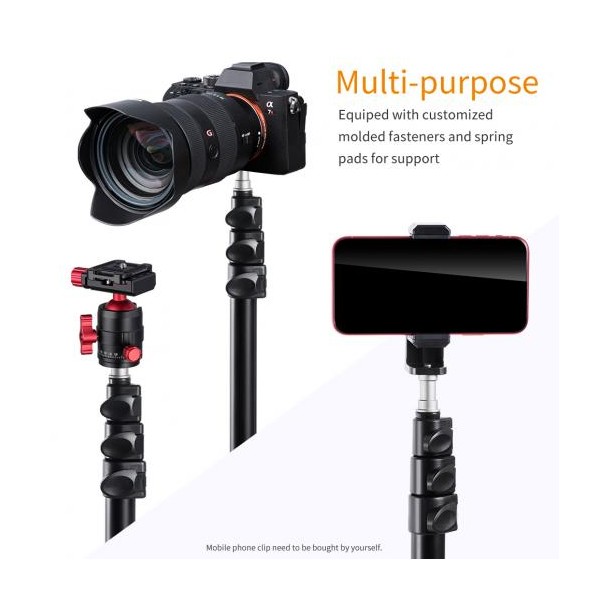 Trépied léger avec brevet exclusif en bas, ce qui le rend plus stable et améliore votre expérience d'utilisation pour plus d'occasions, à l'intérieur ou à l'extérieur.
