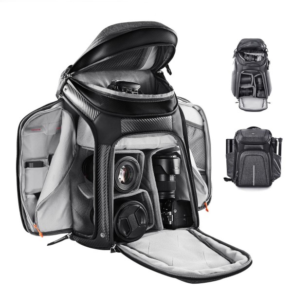 peut contenir 2 appareils photo + 4 objectifs + un ordinateur portable 15,6" (poche séparée) + une tablette 12,9" (séparée). poche) + trépied et autres équipements photo