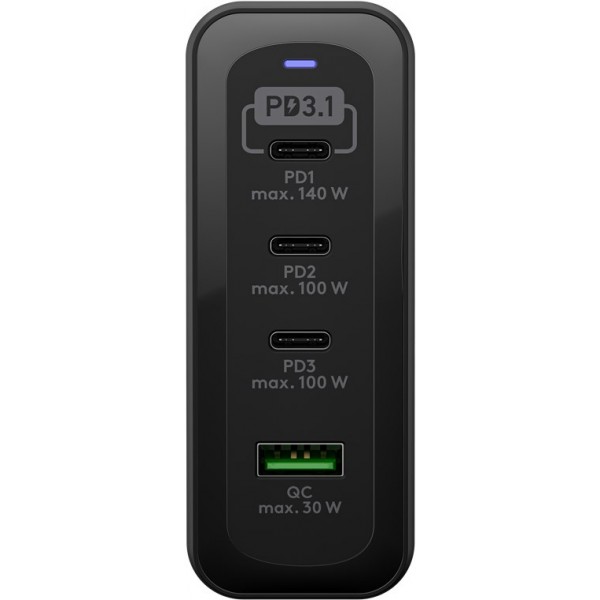 Les semi-conducteurs dotés de la technologie GaN permettent une charge plus rapide et plus efficace et une conception plus légère et plus compacte par rapport aux chargeurs conventionnels. L'électronique de protection intégrée du chargeur USB-C™ protège les appareils connectés contre les surintensités, les surcharges et les surchauffes (y compris câble d'alimentation avec fiche de sécurité de type E/F, 1 m)