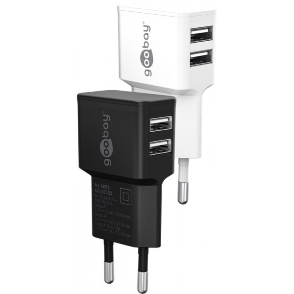 Chargeur Double USB-A (12 W) noir