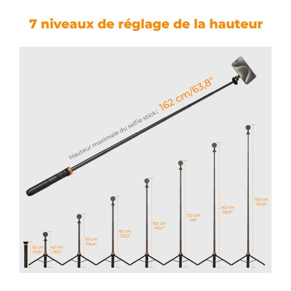 La conception de l'installation magnétique améliore la commodité d'utilisation, rendant la connexion entre le trépied et le téléphone extrêmement simple et rapide.