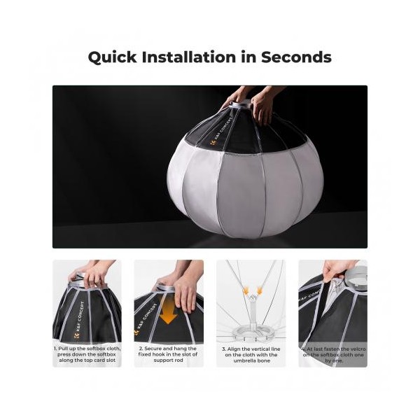 Cette boîte à lumière sphérique ne prend que quelques secondes pour s'ouvrir et être prête à l'emploi