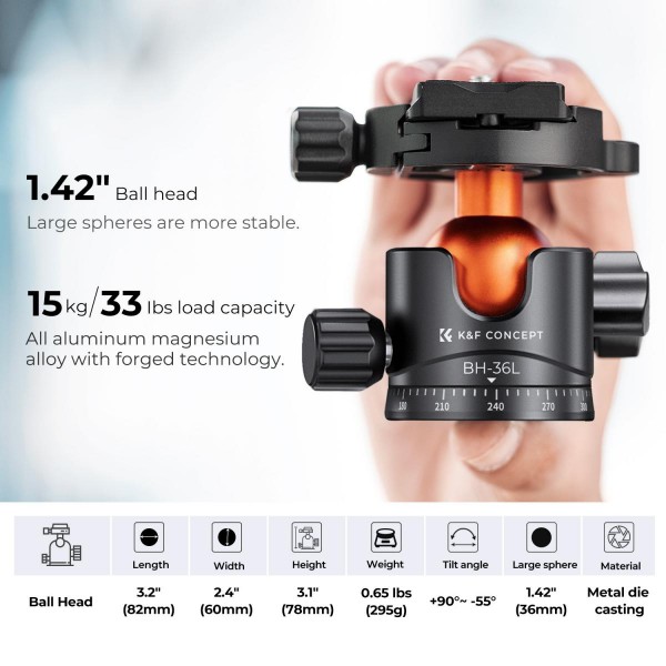 K&F Trepied Alu + rotule sphérique Charge 15Kg