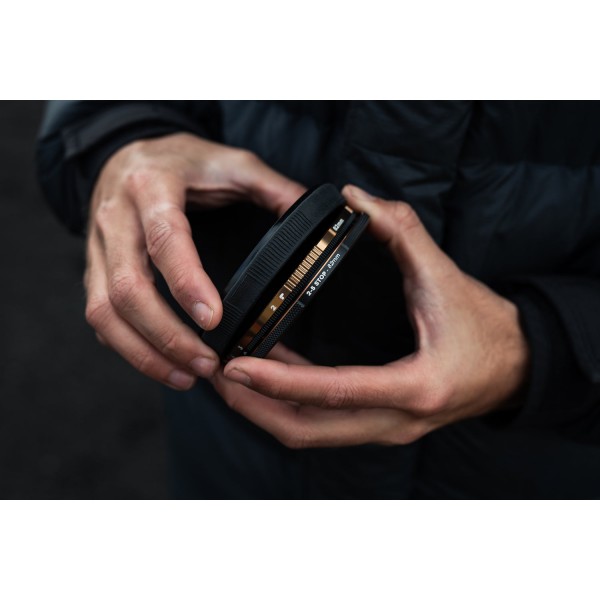 Les molettes latérales assurent une prise ferme et un positionnement rapide, avec une butée empêchant toute rotation au-delà des valeurs définies pour garantir des expositions constantes.